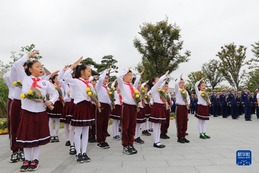 9月30日,少先隊員代表在上海松江烈士陵園內的消防烈士紀念園內參加烈士紀念日活動(dòng)。