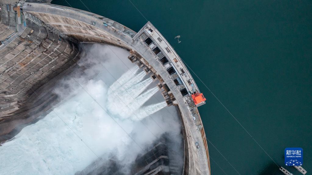 這是2022年5月29日拍攝的白鶴灘水電站一景(無(wú)人機照片)。