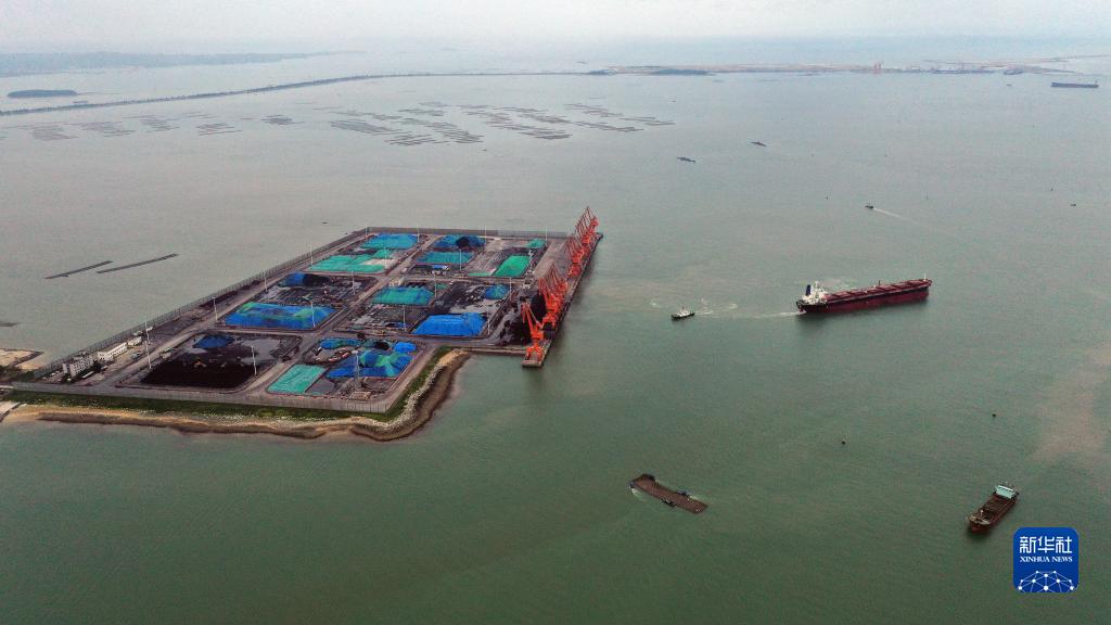 9月29日,在新建的北部灣港欽州集裝箱自動(dòng)化碼頭,一艘卸完貨物的海輪正在駛離(無(wú)人機照片)。