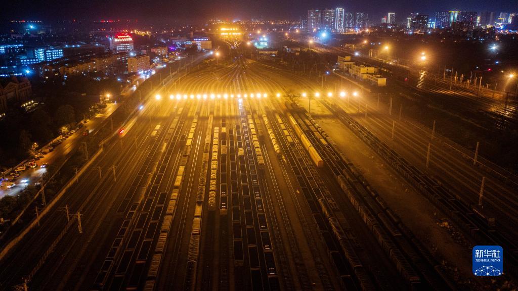在中鐵南寧局集團有限公司柳州南編組場(chǎng),貨列排隊等待調車(chē)作業(yè)(9月27日攝,無(wú)人機照片)。