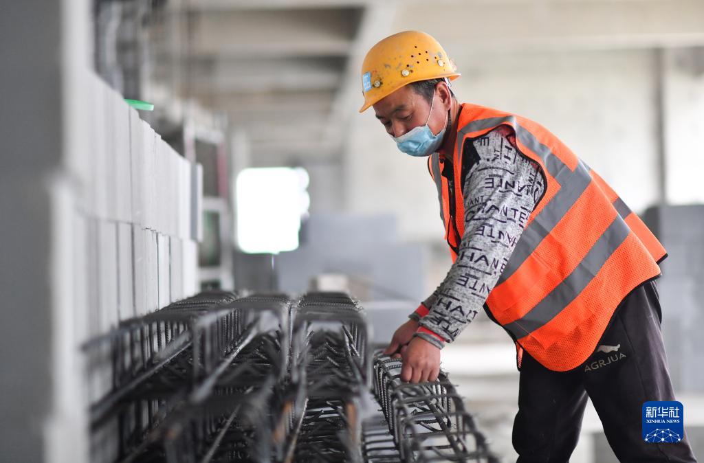 10月1日,中建三局西北公司工人在陜西省西安市紅會(huì )醫院高鐵新城院區建設項目工地施工。