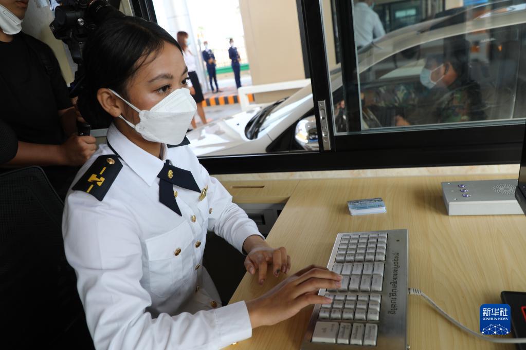 10月1日,收費員在柬埔寨金港高速公路金邊站工作。