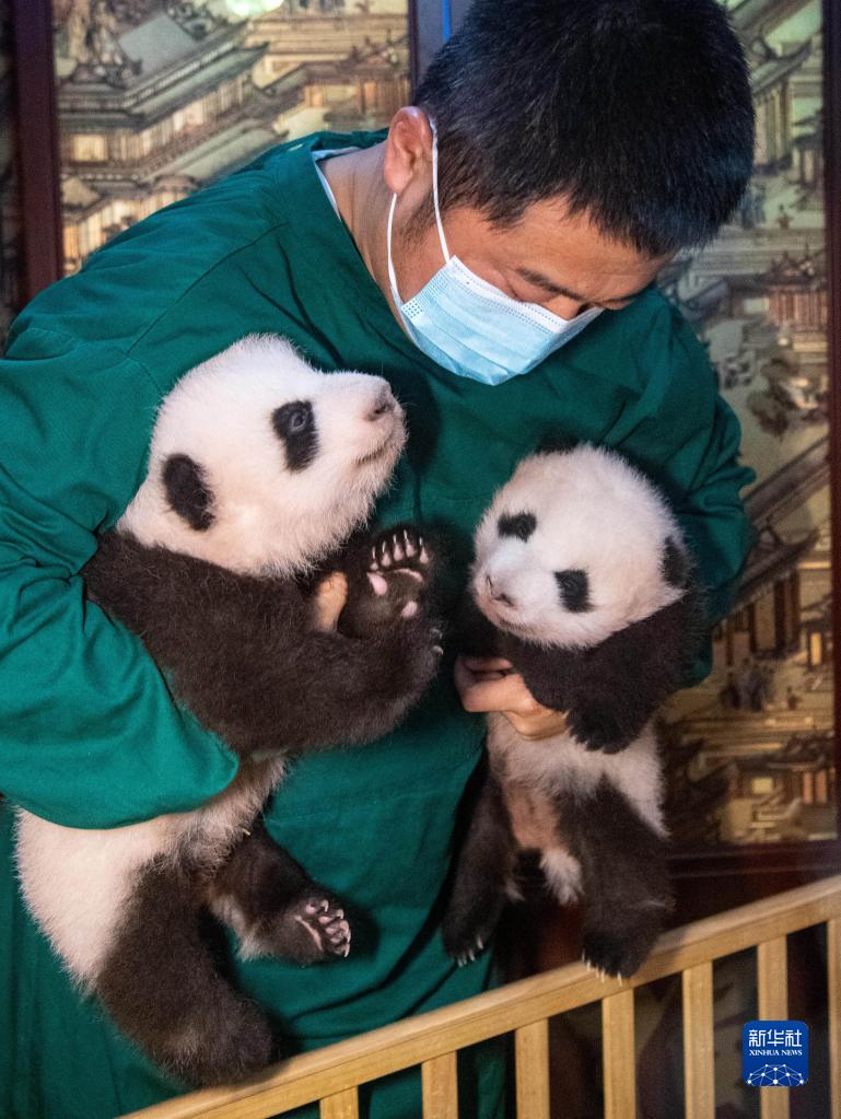 當日,在重慶動(dòng)物園大熊貓館,7月22日出生的雙胞胎大熊貓幼仔與游客首次見(jiàn)面,這對雙胞胎兄妹目前健康狀況良好。它們的母親“二順”曾作為友好使者,從2013年3月起旅居加拿大多倫多動(dòng)物園和卡爾加里動(dòng)物園,2020年11月底回國,今年3月在中國大熊貓保護研究中心與大熊貓“青青”完成自然交配。