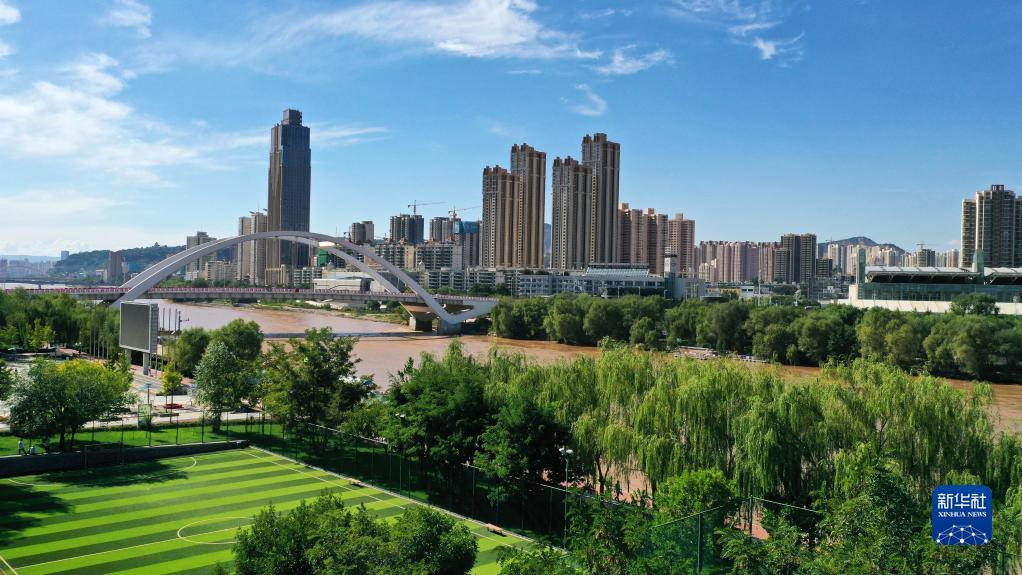 這是在甘肅省蘭州市拍攝的黃河兩岸城市風(fēng)光(9月5日攝,無(wú)人機照片)。