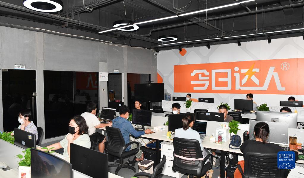 ??趶团d城互聯(lián)網(wǎng)信息產(chǎn)業(yè)園內一區,海南今日達人網(wǎng)絡(luò )科技有限公司員工在辦公(9月29日攝)。