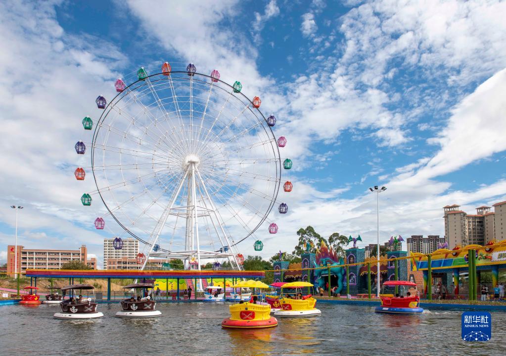 10月1日,市民在湖南省永州市道縣一游樂(lè )場(chǎng)坐碰碰船。