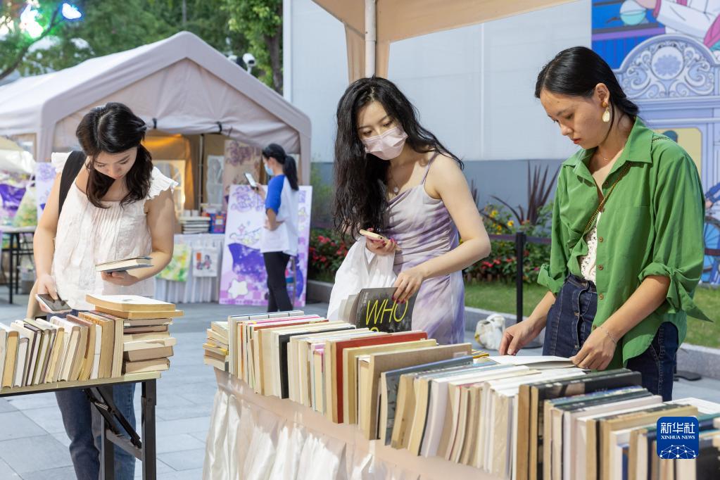 10月1日,市民在上?!坝奕藭?shū)市海派踏秋文化市集”上挑選書(shū)籍。