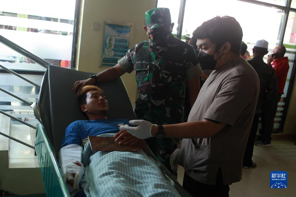 10月2日,在印度尼西亞?wèn)|爪哇省瑪瑯市一家醫院,受傷人員接受治療。新華社發(fā)(巴尤·諾凡塔攝)