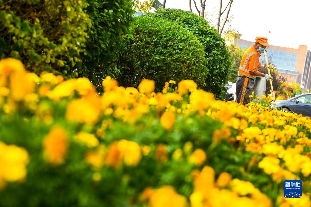 10月2日,吉林省長(cháng)春市南關(guān)區環(huán)衛工人清掃路面。