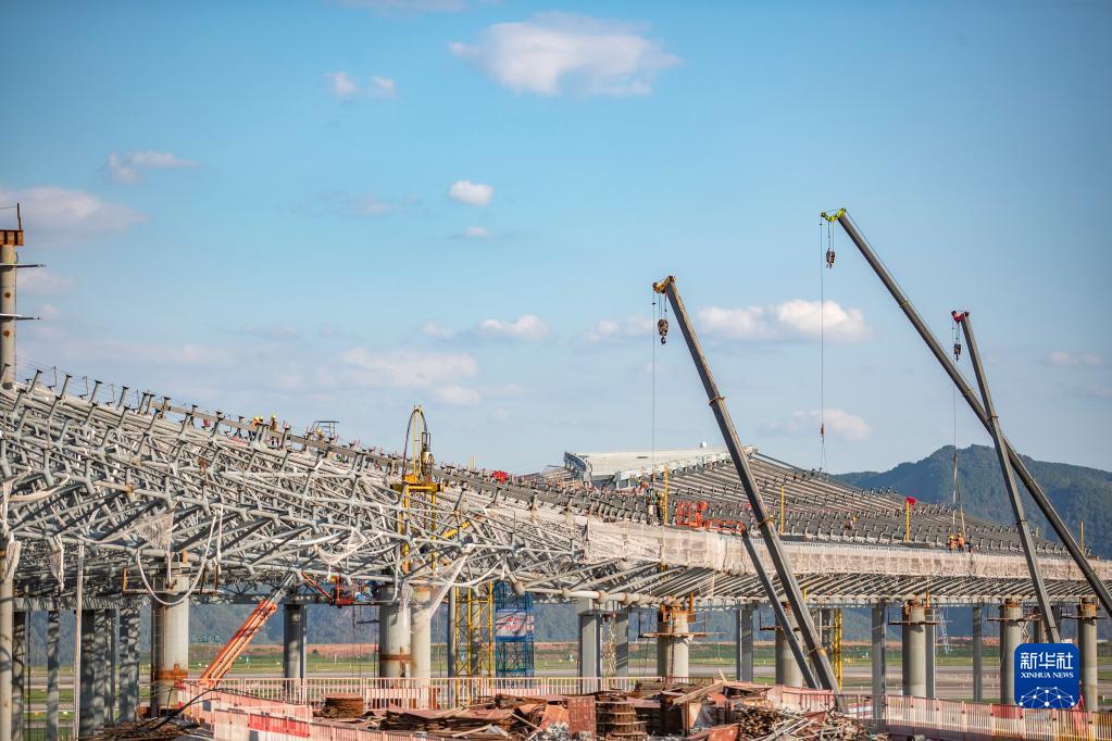 10月1日拍攝的重慶江北國際機場(chǎng)T3B航站樓施工現場(chǎng)。