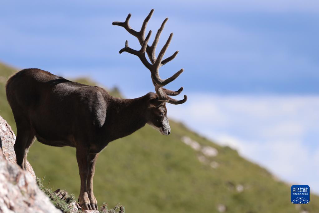 這是在青海省玉樹(shù)藏族自治州雜多縣境內的昂賽大峽谷拍攝的白唇鹿(8月5日攝)