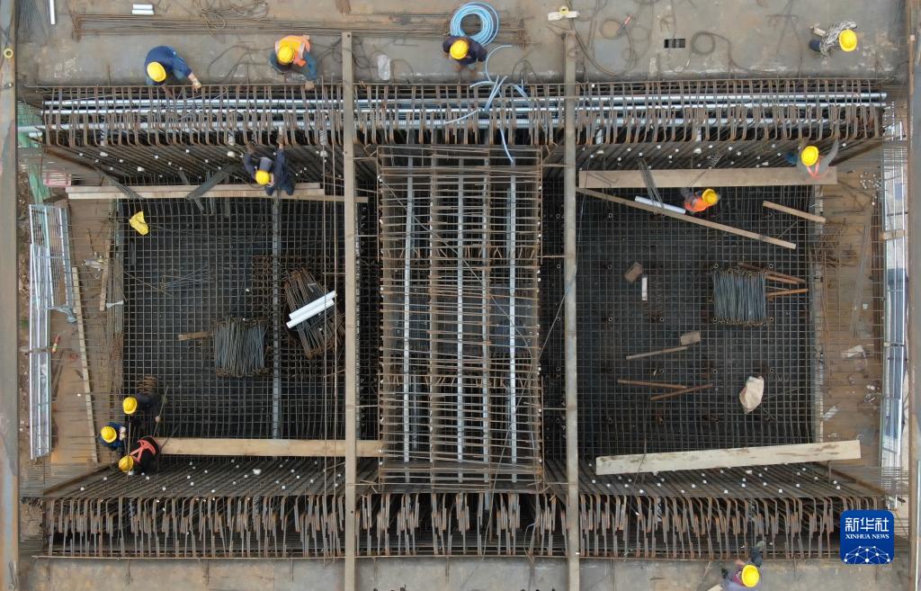 10月2日,中鐵上海工程局施工人員在位于陜西省西安市的西十高鐵跨浐河連續梁0號塊作業(yè)(無(wú)人機照片)。