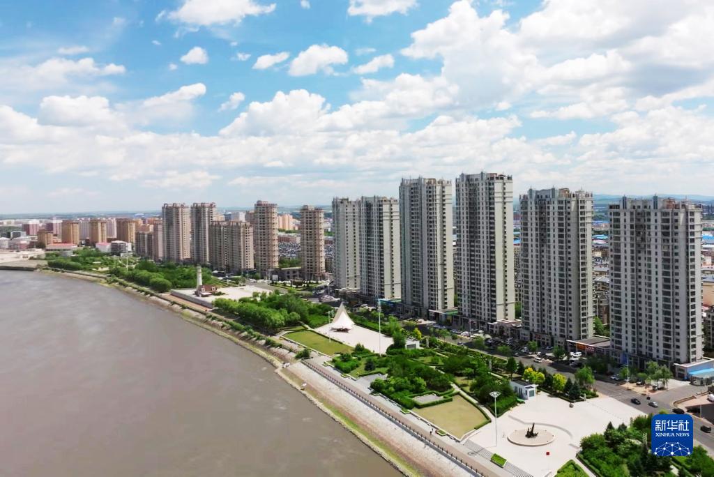 這是2022年6月18日拍攝的黑龍江省佳木斯市沿松花江的景觀(guān)帶(無(wú)人機照片)。