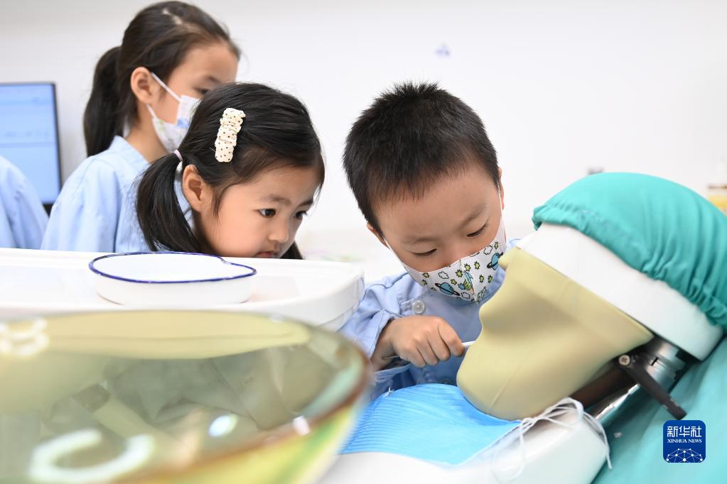 10月2日,小朋友在杭州青少年發(fā)展中心“Do都城”體驗“牙科醫生”。