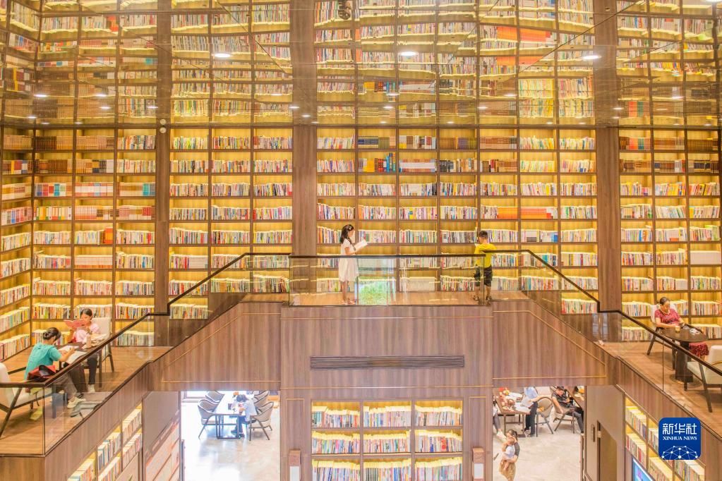 10月2日,在湖南省永州市江永縣桃花源圖書(shū)館,市民在閱讀圖書(shū)。
