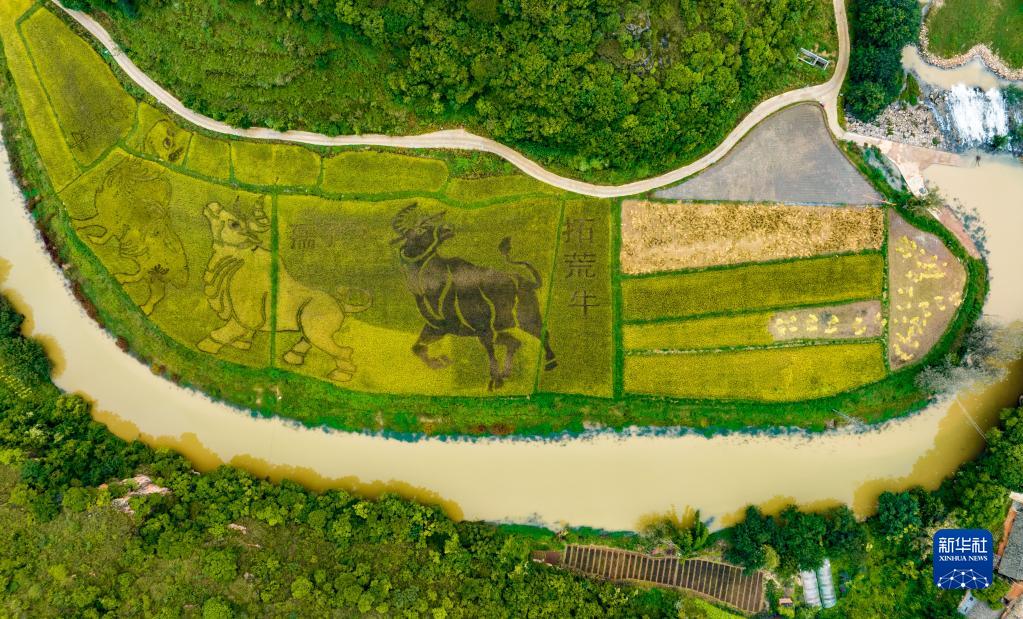 這是10月3日拍攝的云南省昆明市宜良縣耿家營(yíng)彝族苗族鄉的稻田景色(無(wú)人機照片)。