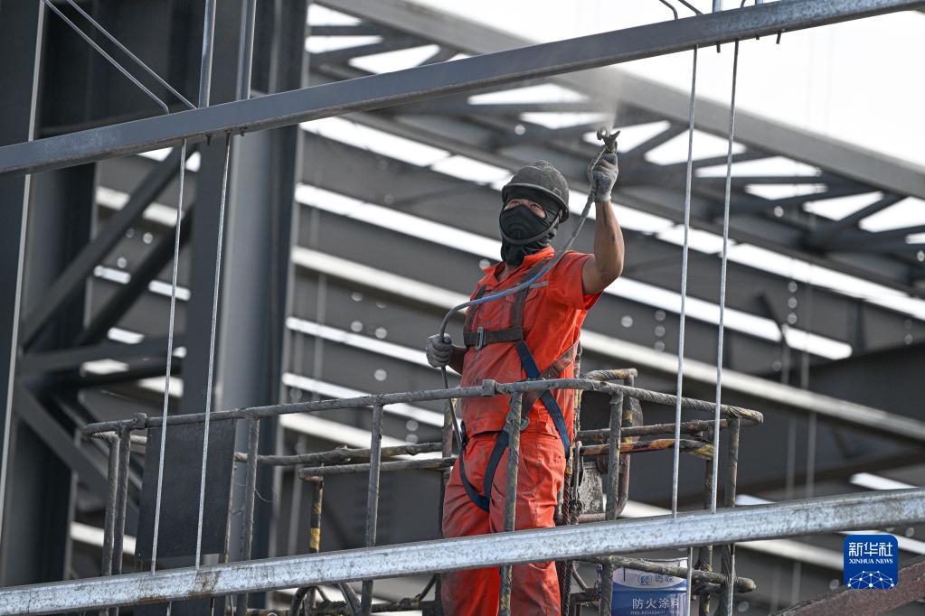 10月2日,工人在位于海南洋浦經(jīng)濟開(kāi)發(fā)區的申能電氣風(fēng)電新能源裝備產(chǎn)業(yè)項目工地施工。
