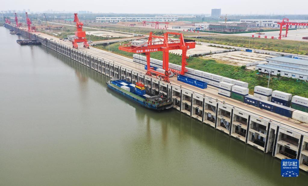 這是9月27日在河南省信陽(yáng)市淮濱縣拍攝的淮濱中心港(無(wú)人機照片)。