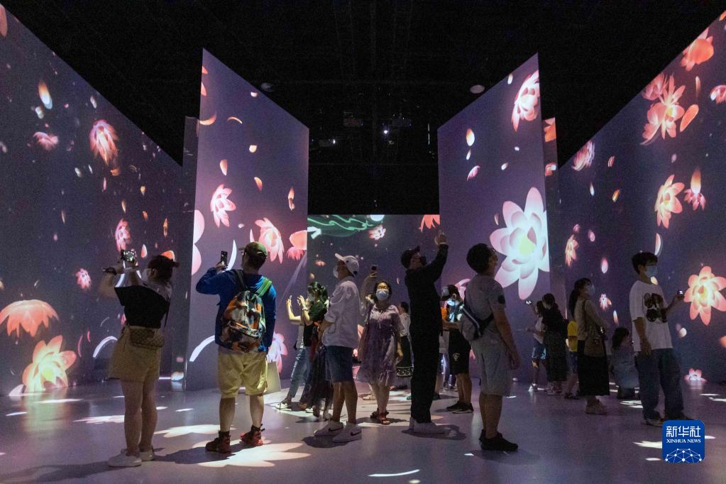 “遇見(jiàn)敦煌 光影藝術(shù)展”將于10月4日在遇見(jiàn)博物館·上海靜安館開(kāi)展。3日,部分媒體及觀(guān)眾提前參觀(guān)體驗。該展以敦煌文化藝術(shù)為核心,以藝術(shù)家重繪的200余幅敦煌石窟壁畫(huà)作品為基礎,通過(guò)3D光雕技術(shù)和數十臺4K超清設備,在投影面積達1300平方米的空間中展現敦煌石窟的藝術(shù)魅力,為觀(guān)眾帶來(lái)沉浸式體驗。新華社記者 王翔 攝
