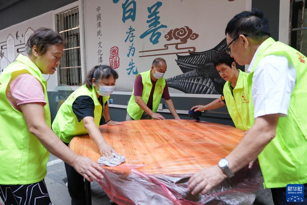 在南昌市東湖區火神廟社區,“時(shí)間銀行”志愿者在社區義務(wù)勞動(dòng)(9月29日攝)。