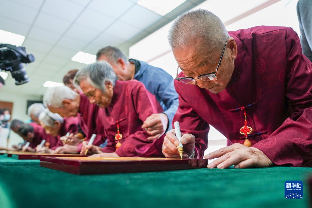 當日是重陽(yáng)節,侵華日軍南京大屠殺遇難同胞紀念館邀請9位幸存者以及他們的后代,一起描壽桃、聽(tīng)白局、聊今夕變化,共度重陽(yáng)節?;顒?dòng)中,9位老人在手印盒中按下手印并簽名,留存歷史記憶。