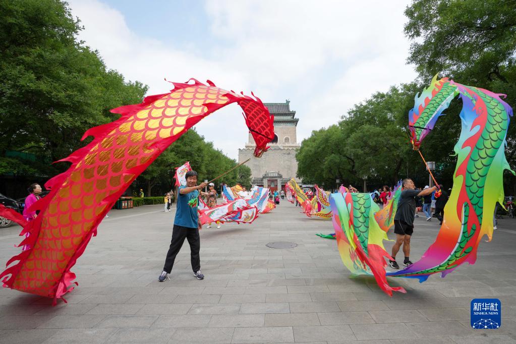 2022年8月29日,市民在北京鐘鼓樓文化廣場(chǎng)上休閑健身。 新華社記者 鞠煥宗 攝