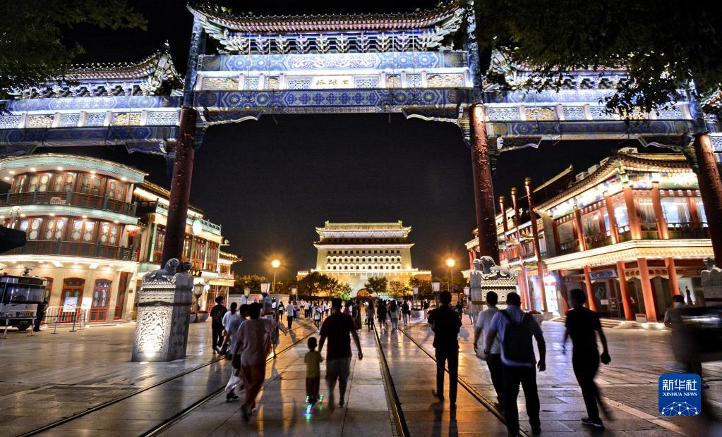 2022年7月6日,市民游客夜游前門(mén)商業(yè)街。 新華社記者 李欣 攝