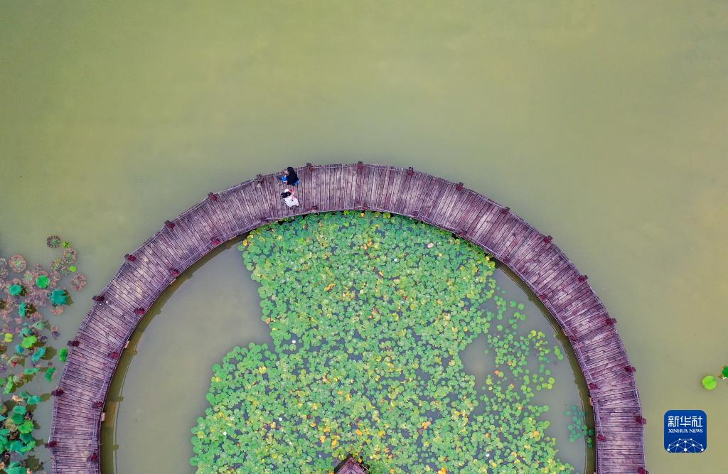 10月5日,游客在貴州省銅仁市玉屏侗族自治縣茶花泉景區游覽(無(wú)人機照片)。