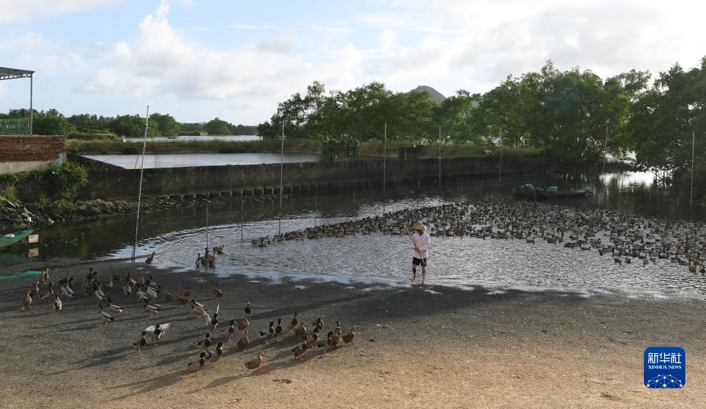 這是2022年10月3日在海南省瓊海市博鰲鎮東海村拍攝的一處海鴨養殖基地。