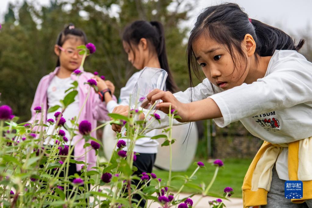 10月5日,在天華百卉園內,小朋友在辨認鮮花。