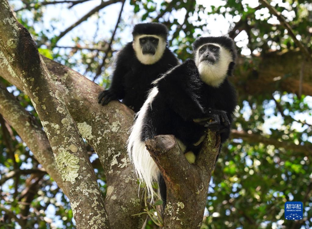 這是10月5日在肯尼亞納紐基拍攝的東非黑白疣猴。