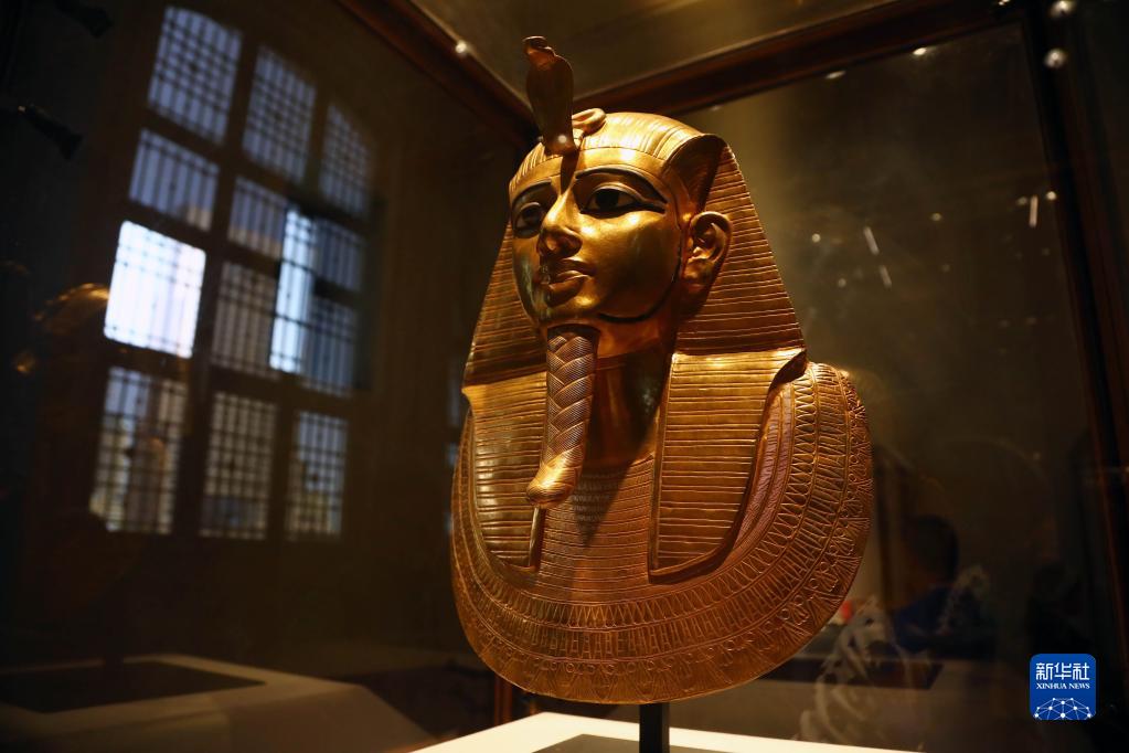 這是10月3日在位于埃及開(kāi)羅的埃及博物館拍攝的法老蘇瑟奈斯一世的金面具。 新華社發(fā)(艾哈邁德·戈馬攝)