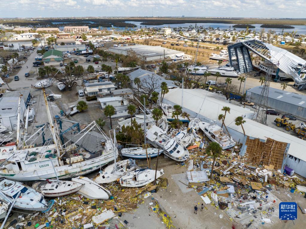 這是10月4日在美國佛羅里達州邁爾斯堡拍攝的遭颶風(fēng)“伊恩”破壞的船只和建筑。 新華社發(fā)(羅蘭多·洛佩斯攝)