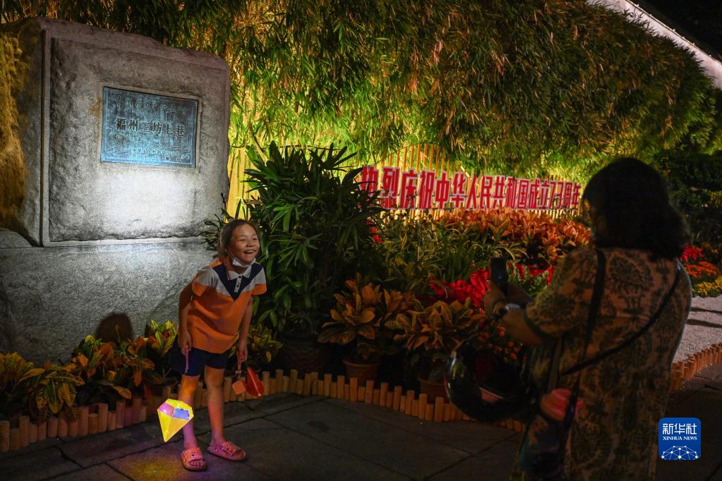 10月5日,游客在福州三坊七巷歷史文化街區打卡拍照。