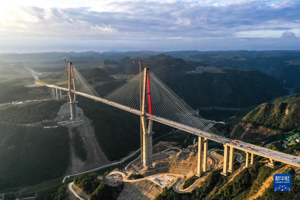 10月6日拍攝的貴州龍里河大橋施工場(chǎng)景(無(wú)人機照片)。