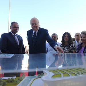 10月6日,黎巴嫩總理米卡提參觀(guān)首都貝魯特附近的中國援助黎巴嫩國家高等音樂(lè )學(xué)院項目,感謝中國政府在多方面給予黎巴嫩的幫助。這是米卡提(左二)觀(guān)看音樂(lè )學(xué)院建筑模型。
