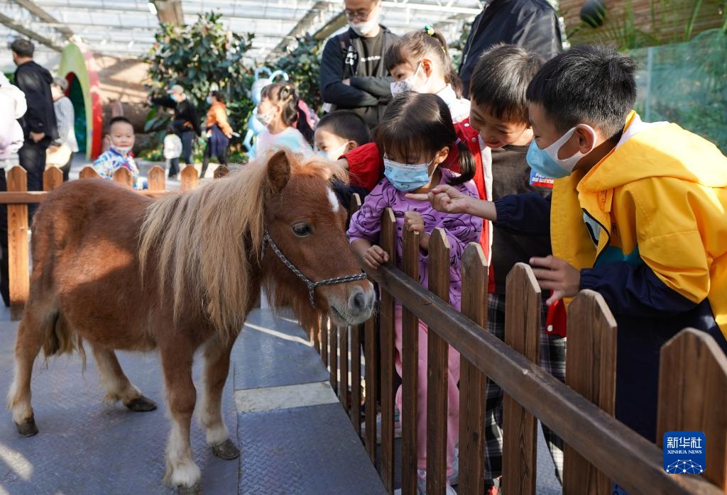10月4日,小朋友們在北京農業(yè)嘉年華園區里觀(guān)賞果下馬。