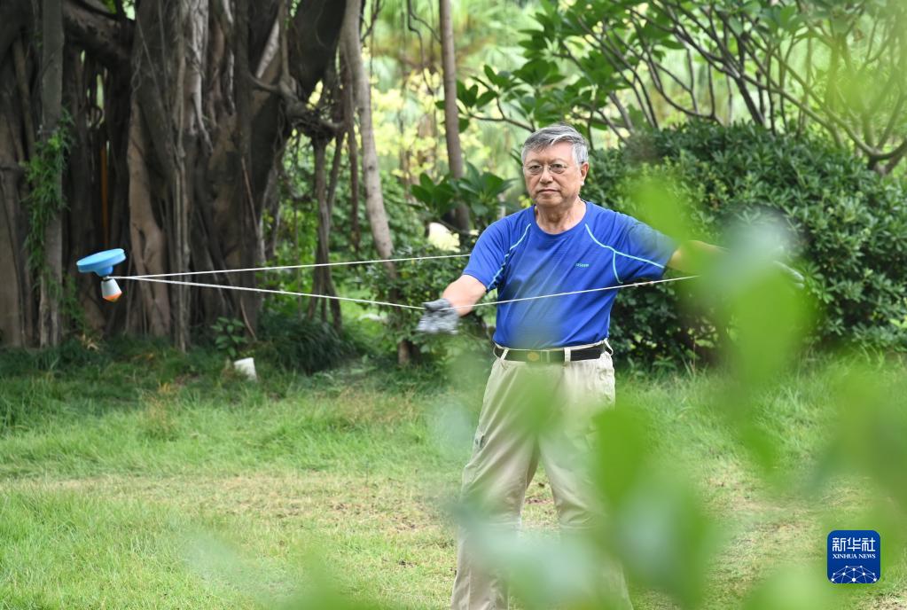 10月7日,市民在福州左海公園抖空竹。