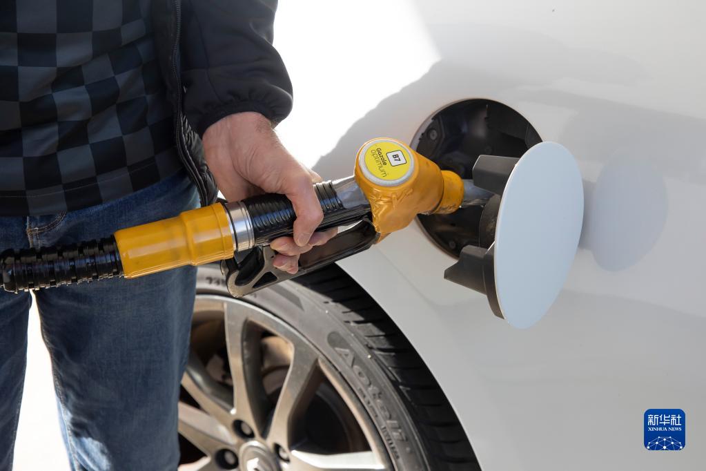 10月6日,在法國北部城市里爾,一名市民在歐尚超市的加油站加油。近日,法國道達爾集團旗下的許多加油站因燃油供應中斷而暫時(shí)關(guān)閉,導致其他加油站前排起長(cháng)龍。