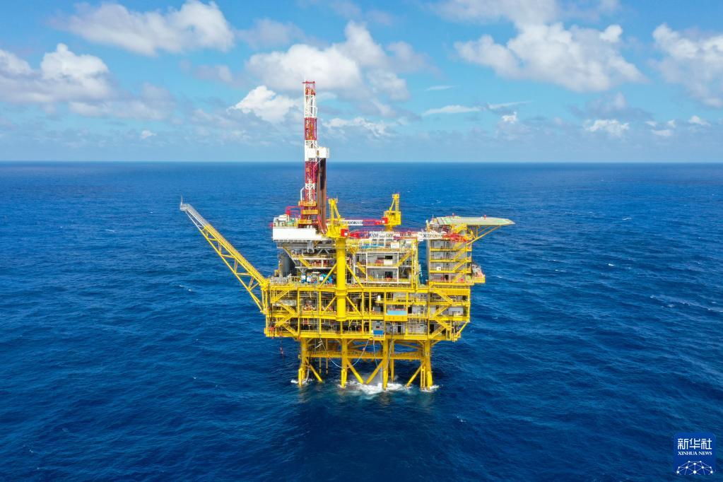 這是深水導管架平臺“?;惶枴保o(wú)人機照片,9月30日攝)。