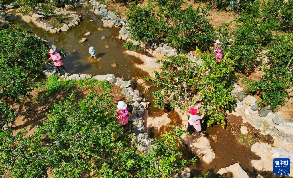 近日,山東省棗莊市嶧城區榴園鎮萬(wàn)畝石榴園的石榴陸續成熟,村民們忙著(zhù)采摘、交易。嶧城區有“中國石榴之鄉”美譽(yù),全區石榴種植面積10余萬(wàn)畝。