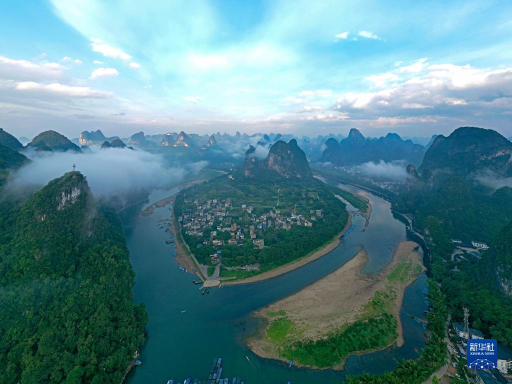 這是在廣西陽(yáng)朔縣興坪鎮拍攝的漓江風(fēng)光(2022年8月25日攝,無(wú)人機照片)。