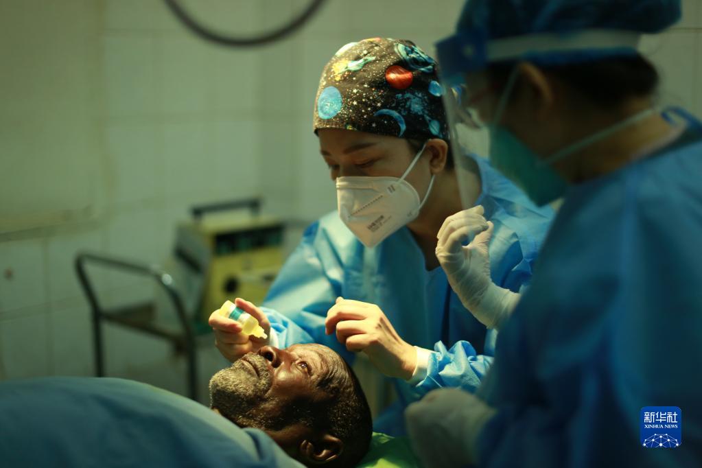 8月8日,在蘇丹喀土穆恩圖曼友誼醫院,中國醫療隊隊員為患者做術(shù)前準備。