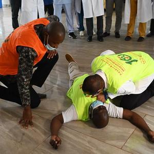 第29批中國援幾內亞醫療隊10日在幾內亞首都科納克里的中幾友好醫院開(kāi)展急救培訓活動(dòng)。此次活動(dòng)主題為“急救白金十分鐘,國際自救互救日”,援幾醫療隊為中幾友好醫院的醫護人員開(kāi)展了心肺復蘇、海姆立克急救、轉運患者、急診接診等項目的演練和培訓。
