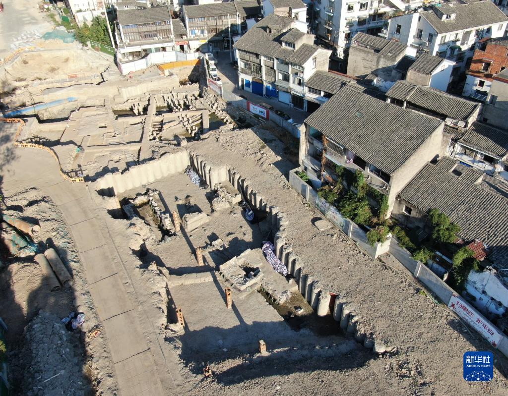 俯瞰朔門(mén)古港遺址發(fā)掘出的古碼頭遺址(10月10日攝,無(wú)人機照片)。