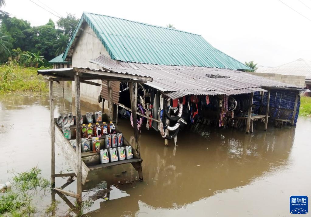 這是10月9日在尼日利亞南部河流州阿華達西區,房屋被洪水包圍。