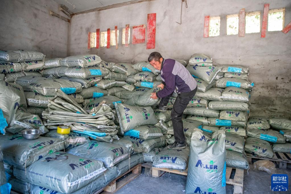 10月11日,在重慶市城口縣蓼子鄉明安村冷水魚(yú)產(chǎn)業(yè)基地,工作人員在搬運魚(yú)食。