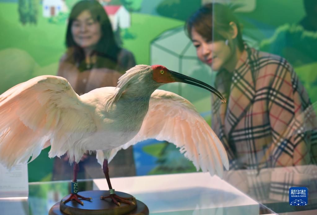游客在陜西寧陜朱鹮野化放飛基地管理站內參觀(guān)(10月10日攝)。 新華社記者邵瑞攝