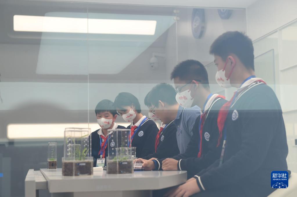 10月12日,在中科院空間應用工程與技術(shù)中心地面主課堂,學(xué)生收看“天宮課堂”第三課時(shí)做實(shí)驗。 新華社記者 羅曉光 攝