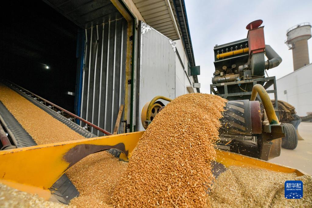 10月12日,在中央儲備糧天津東麗直屬庫有限公司大港分公司,小麥被傳送帶轉運至倉房?jì)取?/p>